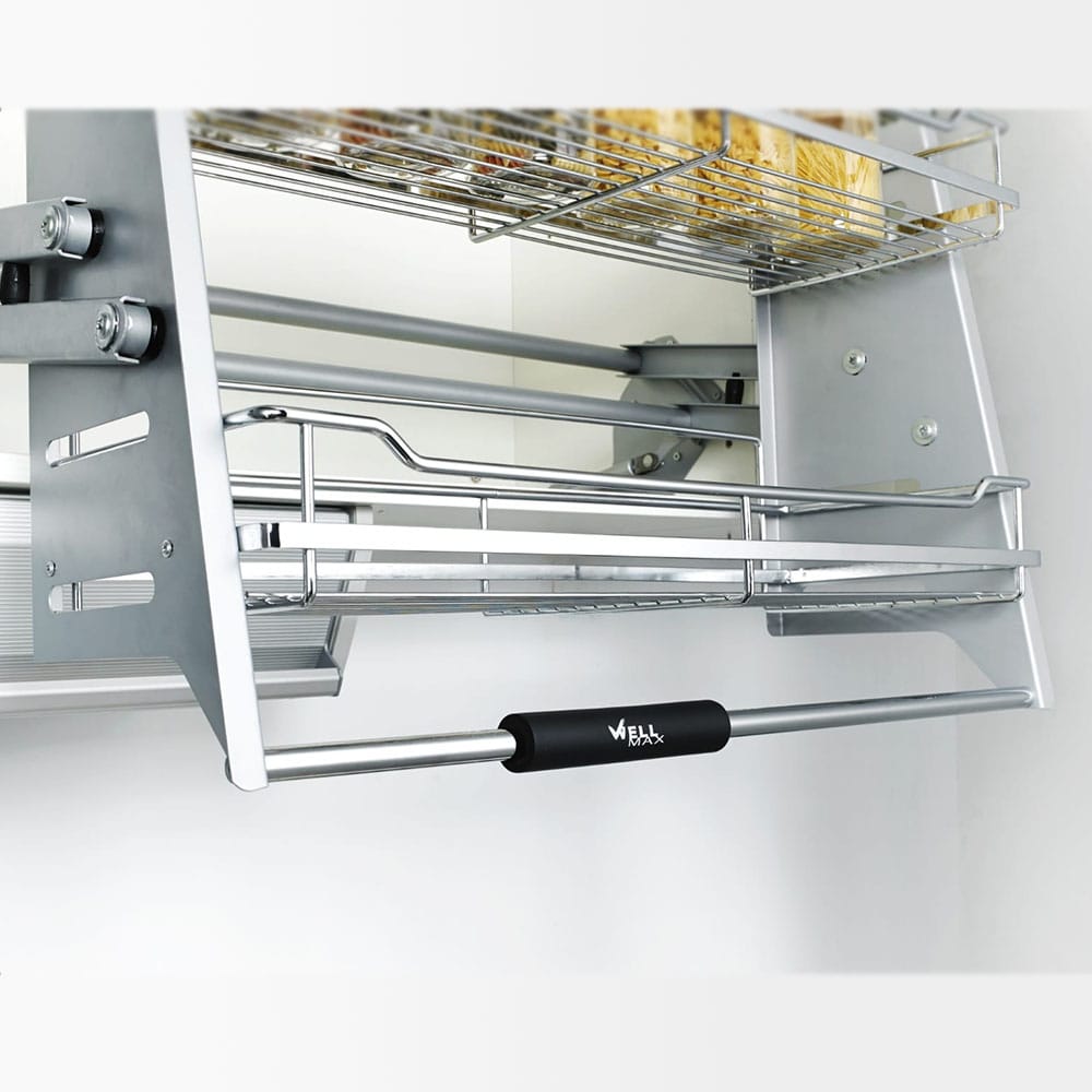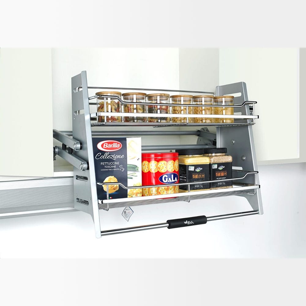 Pull Down Shelf offers a convenient adjustable design, making it easy to access and organize items in kitchen cabinets and cupboards.